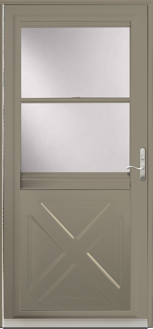 It comes with a knob style handle and a glass panel that stores beneath the insect screen for optimum anytime ventilation. Best storm door for pet owners. Half glass with venting screen insert. If you re looking for a traditional feel our crossbuck storm door is perfect.